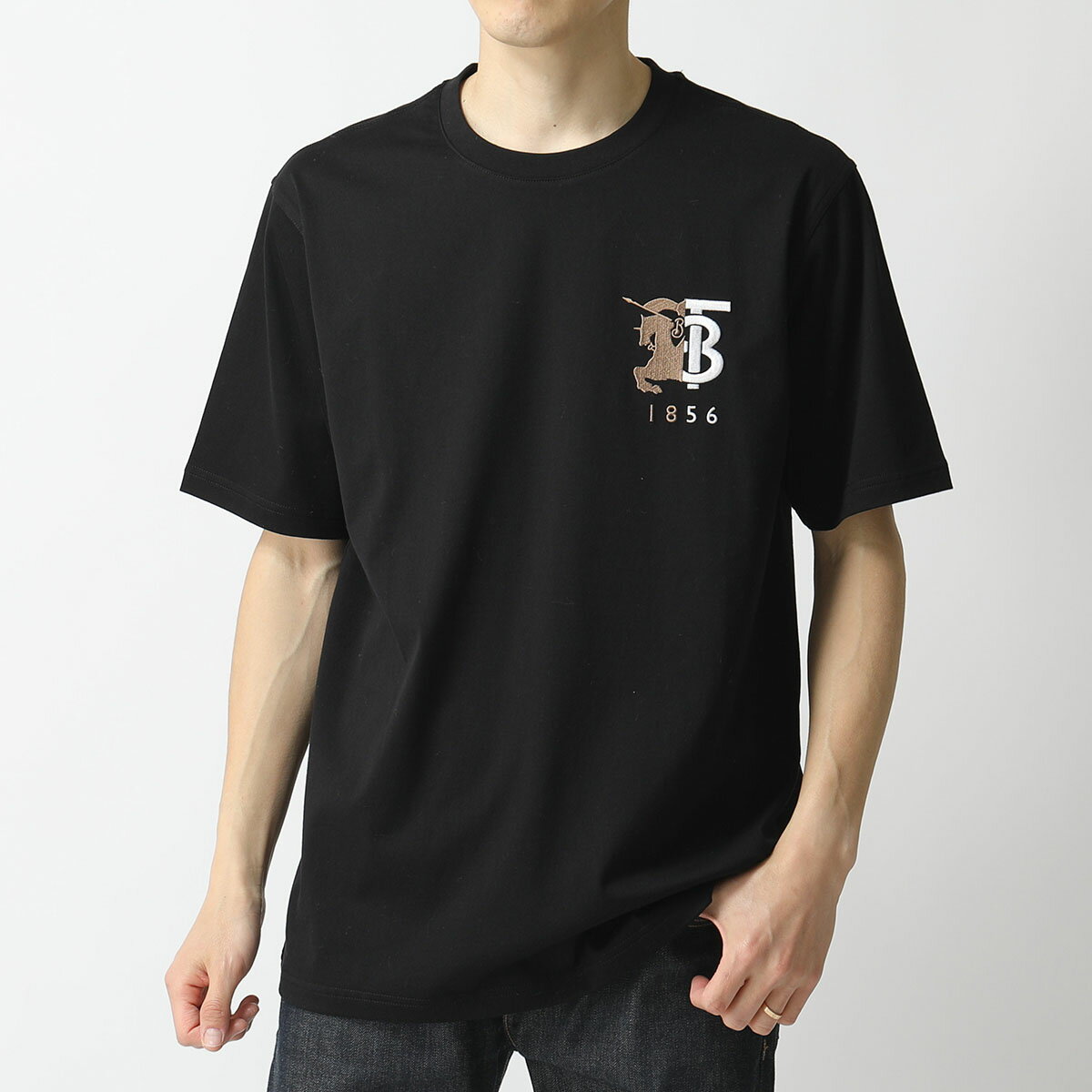 【エントリーでポイント最大13倍!10日21時〜23時59まで】BURBERRY バーバリー 8023785 1003 クルーネック 半袖 Tシャツ カットソー ロゴT 刺繍 BLACK メンズ
