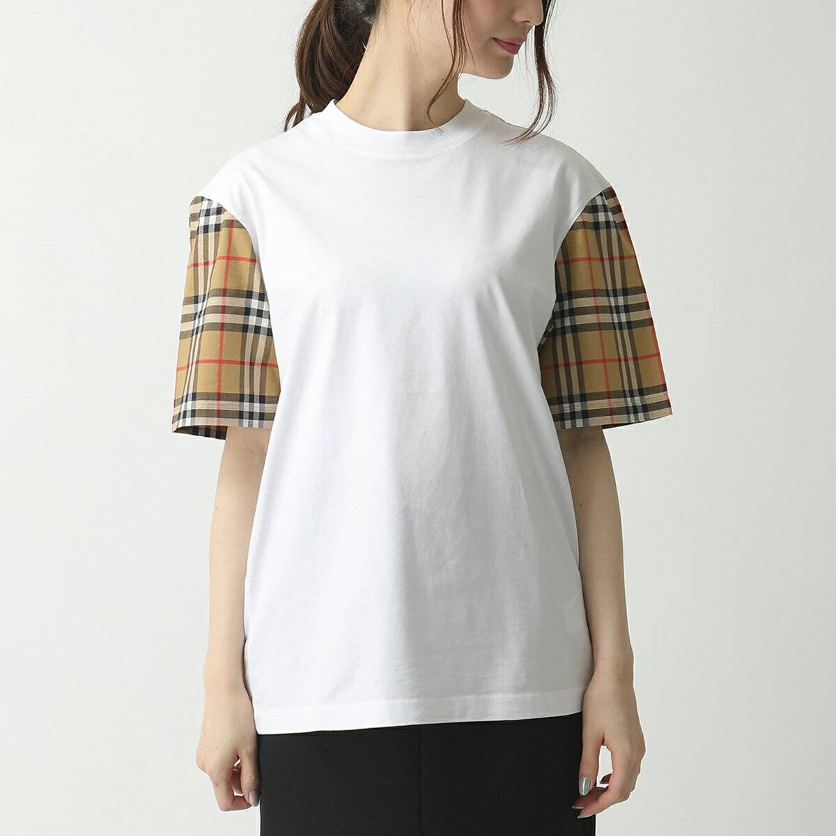 【エントリーでポイント最大13倍!10日21時〜23時59まで】BURBERRY バーバリー 8014896 ヴィンテージチェック 切替 コットン 半袖 Tシャツ カットソー WHITE レディース