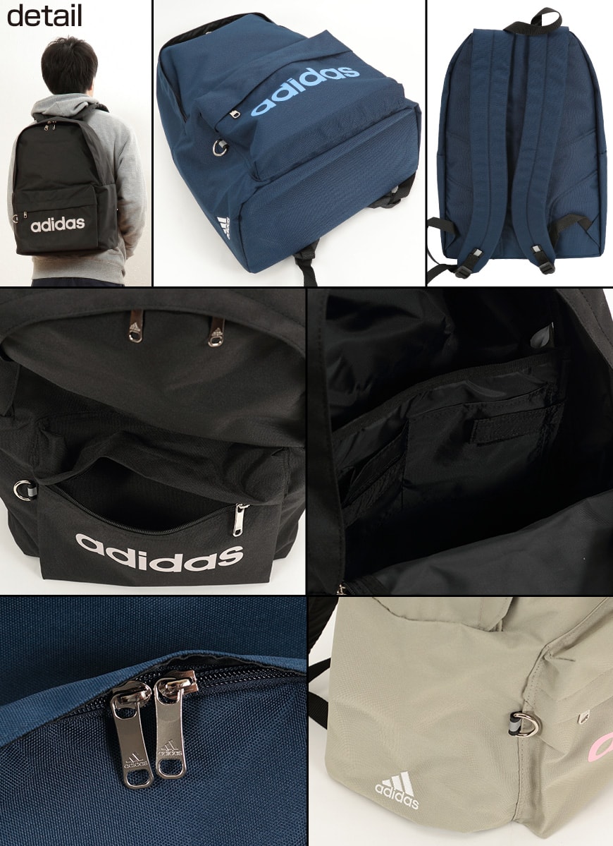 【アディダス リュックの特長】・上部が大きく開閉するので、物の出し入れがラクラク!・内側には教科書仕切りや小物の収納に便利なポケット付き。